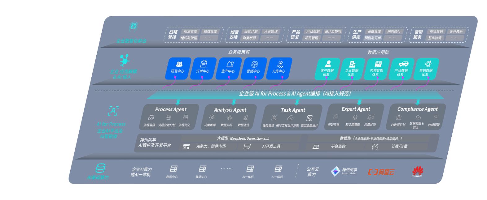 亿彩网问学智车解决方案是一套基于AI技术的汽车行业智能化系统,,覆盖从底层算力到顶层AI应用的全栈方案。。方案由算力层、、、模型层和应用层组成:算力层,,,方案支持多种一体机配置,,具备云端灵活部署、、、多云适配以及动态优化计算资源的能力;模型层,,亿彩网问学平台版提供了企业级AI应用一站式构建与管理平台,,支持基于后训练强化技术的汽车企业专属模型的训练、、、、评测和运营;应用层,,,亿彩网问学DeepSeek版提供包括超级员工、、、智能招采、、、、智能营销、、、、智能客服、、AI for BI等一系列解决方案,,,,可助力汽车行业实现数字化转型,,让管理更智能、、响应更敏捷。。