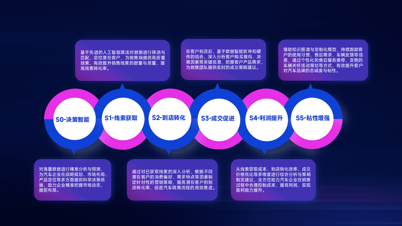 通过拓宽潜在客户来源、、优化线索分配并提高到店转化率,,,以增强销售效率。。同时,,,利用线索数据不断优化分析模型,,,有效提升转化率,,扩大营销影响力。。。